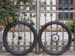 To finish the build, we seat a tubeless tyre on the wheel and then measure the tension again across all spokes. This ensures that there is no shifting or settling of the spokes and rim to worry about when the wheel gets its first use.